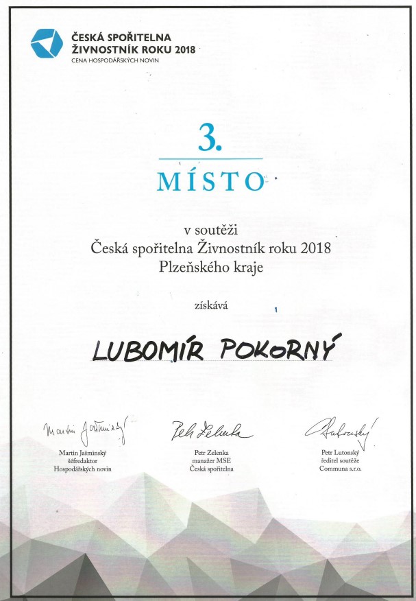V letech 2013, 2014, 2015, 2017, 2018 a 2019 byla firma v krajském finále soutěže Živnostník roku a v letech 2013 a 2018 se umístila na 3. místě.